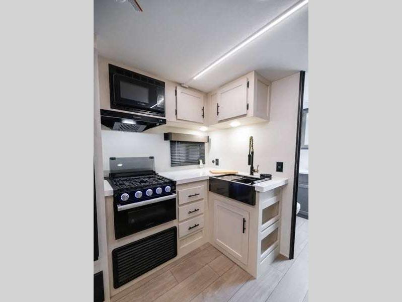 Sleeps 3 Slides 1 Length 31 ft 1 in Ext Width 8 ft Ext Height 11 ft Hitch Weight 910 lbs GVWR 7910 lbs Dry Weight 6581 lbs Cargo Capacity 1329 lbs Fresh Water Capacity 81 gals Grey Water Capacity 35 gals Black Water Capacity 35 gals Available Beds Queen Refrigerator Type 12V Residential Style Refrigerator Size 10 cu ft Cooktop Burners 3 Number of Awnings 1 Water Heater Type On Demand Tankless AC BTU 15000 btu Awning Info 15' Axle Count 2 Shower Type Radius Electrical Service 30 amp Similar Floorplans