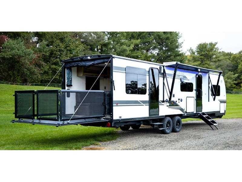 Sleeps 4 Length 33 ft 3 in Ext Width 8 ft Ext Height 10 ft 8 in Int Height 0 ft Hitch Weight 989 lbs GVWR 7989 lbs Dry Weight 6412 lbs Cargo Capacity 1577 lbs Fresh Water Capacity 52 gals Grey Water Capacity 38 gals Black Water Capacity 38 gals Furnace BTU 20000 btu Available Beds RV King Refrigerator Type 12V Cooktop Burners 3 Number of Awnings 1 Garage Size 13 ft Water Heater Type Tankless AC BTU 15000 btu Awning Info 15' Full Length Power w/LED Light Strip Axle Count 2 Shower Type Standard Solar Wattage 200 watts Similar Floorplans
