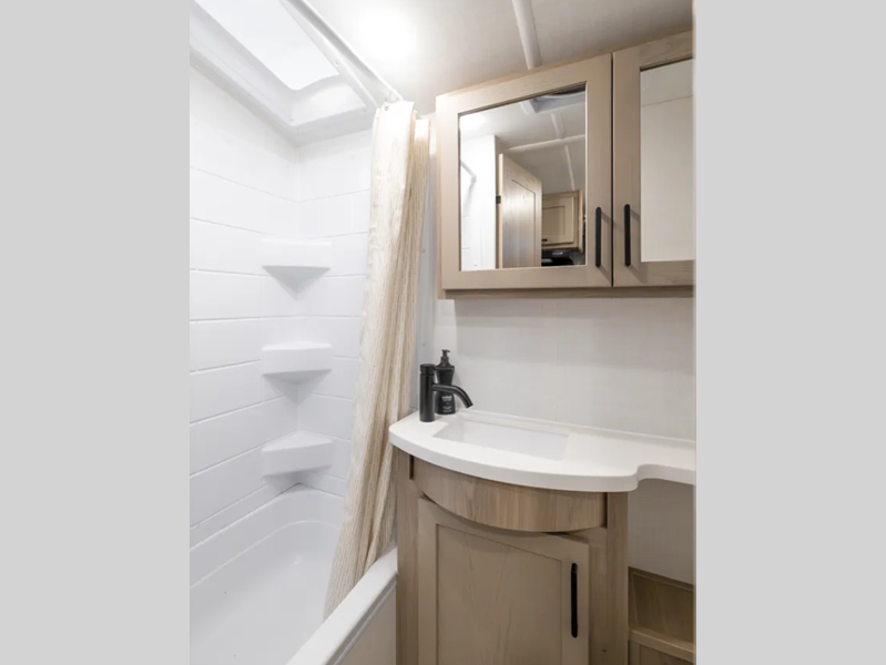 Sleeps 6 Slides 1 Length 21 ft 2 in Ext Width 7 ft 8 in Ext Height 10 ft 4 in Hitch Weight 501 lbs Dry Weight 3843 lbs Cargo Capacity 1155 lbs Fresh Water Capacity 31 gals Grey Water Capacity 27 gals Black Water Capacity 27 gals Furnace BTU 20000 btu Number Of Bunks 2 Available Beds Full Refrigerator Type 12V Convection Cooking Yes Cooktop Burners 3 Number of Awnings 1 LP Tank Capacity 20 lbs Water Heater Type Gas/Electric AC BTU 13500 btu TV Info 12V Smart TV Awning Info 14' Power Axle Count 1 Number of LP Tanks 2 Shower Type Tub/Shower Combo Similar Floorplans