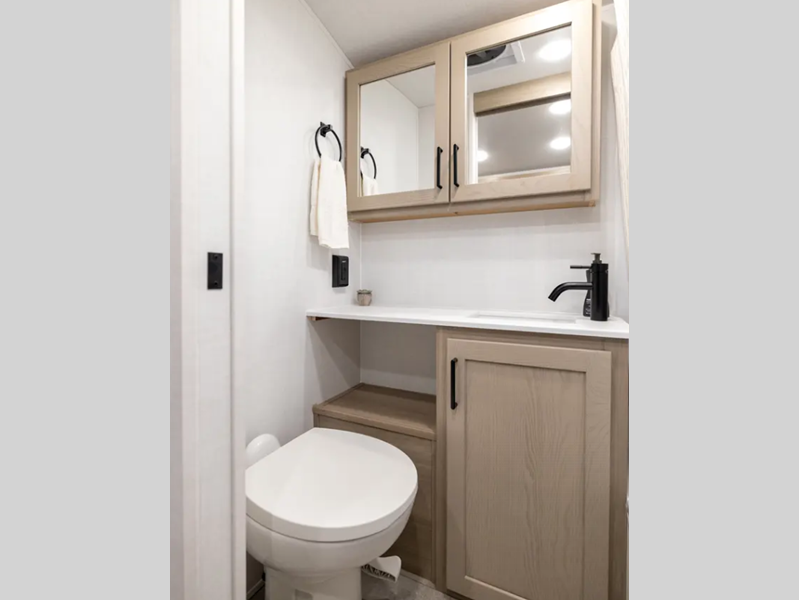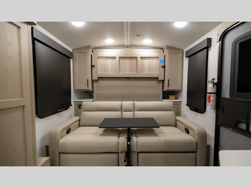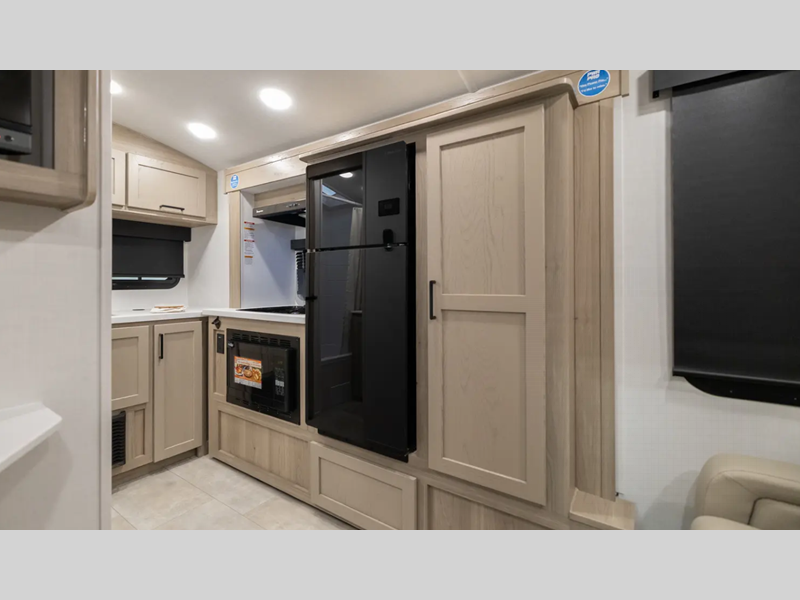The complete composite wall construction and frameless widows provide a durable and sleek travel trailer you are sure to love. Each model features bigger nitrogen-filled tires and standard solar power that will allow you to go off-grid when the adventure calls for it. A refrigerator also comes standard, along with back-up camera prep, laminated roof, and more at-home comforts. And if you want to go off-grid, optional sunset seeker package is available on select models!