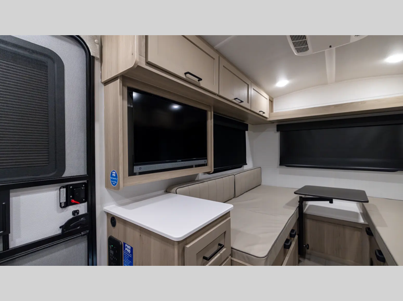 Sleeps 3 Length 14 ft 11 in Ext Width 7 ft 4 in Ext Height 7 ft 3 in Hitch Weight 290 lbs Dry Weight 2243 lbs Cargo Capacity 687 lbs Fresh Water Capacity 20 gals Grey Water Capacity 6 gals Tire Size 15" Furnace BTU 20000 btu Number Of Bunks 1 Refrigerator Type 12V Cooktop Burners 3 Number of Awnings 1 LP Tank Capacity 20 lbs Water Heater Type Gas/Electric Quick Recovery AC BTU 13500 btu TV Info 12V TV Awning Info 10' Power Axle Count 1 Number of LP Tanks 2 Shower Type N/A Similar Floorplans