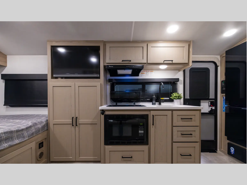 Sleeps 4 Slides 1 Length 19 ft Ext Width 7 ft 8 in Ext Height 10 ft 3 in Interior Color Xander Stone Hitch Weight 486 lbs Dry Weight 3280 lbs Cargo Capacity 1206 lbs Fresh Water Capacity 31 gals Grey Water Capacity 30 gals Black Water Capacity 30 gals Tire Size 15" Furnace BTU 20000 btu Number Of Bunks 2 Refrigerator Type Gas/Electric Cooktop Burners 3 Number of Awnings 1 LP Tank Capacity 20 lbs Water Heater Type Gas/Electric Quick Recovery AC BTU 13500 btu TV Info 12V TV Awning Info 12' Power Axle Count 1 Number of LP Tanks 2 Shower Type Tub/Shower Combo Similar Floorplans