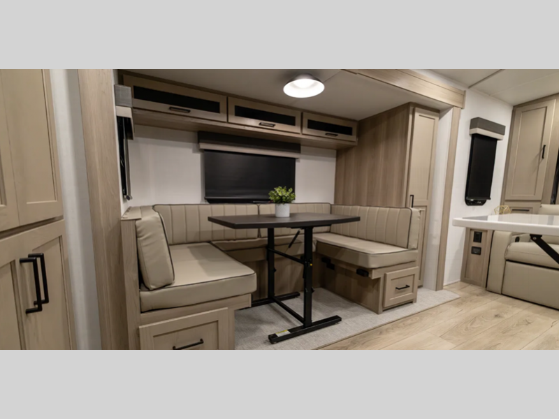 Each travel trailer will have you feeling right at home with its hidden hinge cabinet doors, plus solid surface kitchen countertops and roller shades for added privacy. The Showermiser water saving system is sure to come in handy while camping over the weekend, and the TV with a stereo ensures you'll never go bored. Towing is made hassle-free thanks to the power tongue jack, along with Dexter Torflex axles and Goodyear Endurance tires.