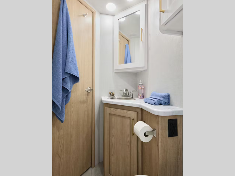 Sleeps 5 Slides 1 Length 26 ft 11 in Ext Width 8 ft 3 in Ext Height 11 ft Int Height 7 ft Interior Color Silk Haze, Snow Leopard Exterior Color Standard Graphics Hitch Weight 8000 lbs GVWR 12300 lbs Fresh Water Capacity 41 gals Grey Water Capacity 33 gals Black Water Capacity 30 gals Furnace BTU 30000 btu Generator 50 State 4.0 kW Dual Gas/LP Fuel Type Gas Engine 6.6L V8 Chassis Chevrolet Horsepower 401 hp Fuel Capacity 57 gals Wheelbase 177 in Number Of Bunks 1 Available Beds Two Twin with King Conversion Torque 464 ft-lb Refrigerator Type 12V Convection Cooking Yes Cooktop Burners 2 Shower Size 27" x 27" Number of Awnings 1 LP Tank Capacity 40.9 lbs Water Heater Type Tankless AC BTU 13500 btu Basement Storage 65 cu. ft. TV Info Cab 32" Smart TV Awning Info 17' 6" Power w/Integrated LED Lighting Gross Combined Weight 16000 lbs Shower Type Radius Electrical Service 30 amp Similar Floorplans