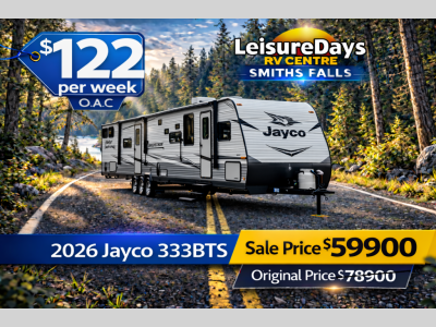 Leisure Days RV is not responsible for any misprints, typos, or errors found in our website pages. Any price listed excludes sales tax, registration tags, and delivery fees. Manufacturer pictures, specifications, and features may be used in place of actual units on our lot. Please contact us @519-622-7197 for availability as our inventory changes rapidly. All calculated payments are an estimate only and do not constitute a commitment that financing or a specific interest rate or term is available.